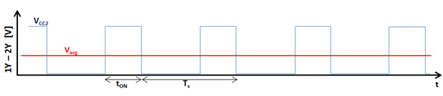Indicando con VCC2 la tensione di picco superiore del buffer di potenza dell'integrato L293D, il valore medio del segnale PWM in uscita sarà: