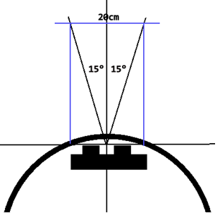 Rispetto al punto di partenza del sensore, rilevando gli ostacoli a 20cm di distanza, il sensora nota gli ostacoli nel raggio trasversale di 20cm*cos(75°) = ±5.2cm.