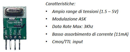 Per la comunicazione radio sono stati sfruttati dei moduli abbastanza economici dell’azienda QUASAR funzionanti a 433.92Mhz con modulazione ASK.