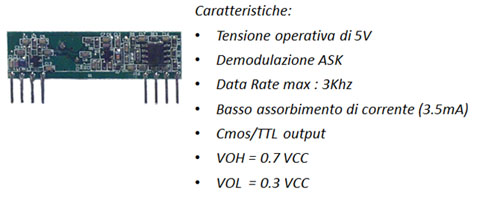 - 1 modulo radio ricevente a 433MHz per la ricezione dei comandi da remoto;