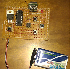 Ho modificato anche il radio-comando: in precedenza l’avevo realizzato su breadboard sfruttando un micro ATmega8515 (era l’unico che avevo in quel momento). Siccome quel micro era totalmente sprecato per la funzione che doveva svolgere, ho deciso di creare il nuovo radiocomando ricorrendo ad un PIC16F628A che avevo disponibile (con la scusa ho quindi imparato anche qualcosina sui PIC).