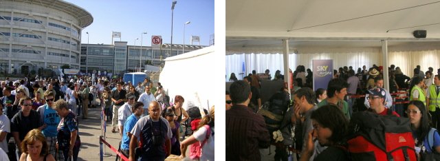 Il mio volo non appare né tra i soppressi né tra quelli con tutti i posti garantiti. Viene indicato di telefonare per chiedere, ma c'è sempre occupato. Alla fine i miei colleghi dalla Spagna chiamano l'ufficio locale della compagnia aerea LAN Chile, che conferma che la mia prenotazione è valida, e di presentarmi al check-in con un anticipo di tre ore.