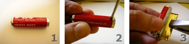 Io mi sono arrangiato così: lo zinco l'ho ricavato da una pila "heavy duty" (non alcalina) di formato stilo (AA), che ho aperto e svuotato come visibile nelle foto. Il cilindretto grigiastro, chiuso sul fondo e che corrisponde al polo negativo, è fatto di zinco. È bene che la pila non sia vecchia e scarica, altrimenti lo zinco potrebbe essere corroso.