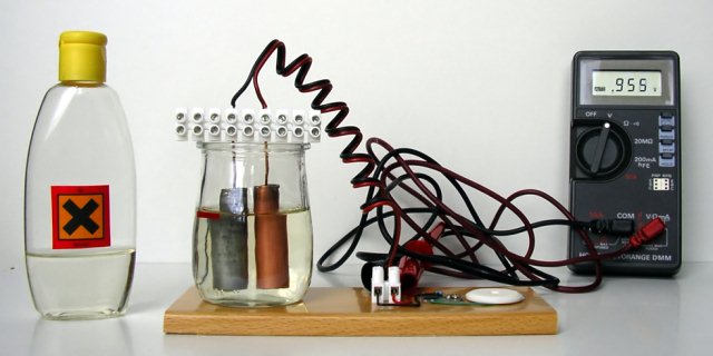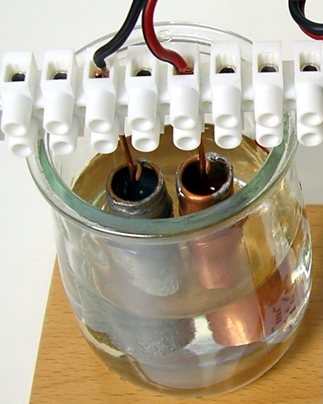 - Prima di riporre la pila, sciacquare e asciugare la tazza e gli elettrodi (evitando che restino residui di acqua o elettrolita). Eventualmente ripulire gli elettrodi (specie quello di zinco) sfregandoli con un panno umido.