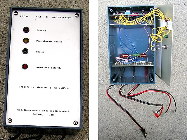 Fig. 3 - Dispositivo per la prova manuale di pile e accumulatori sotto carico, utilizzato per il controllo semestrale degli apparecchi della prima generazione, che non erano dotati di autodiagnostica.