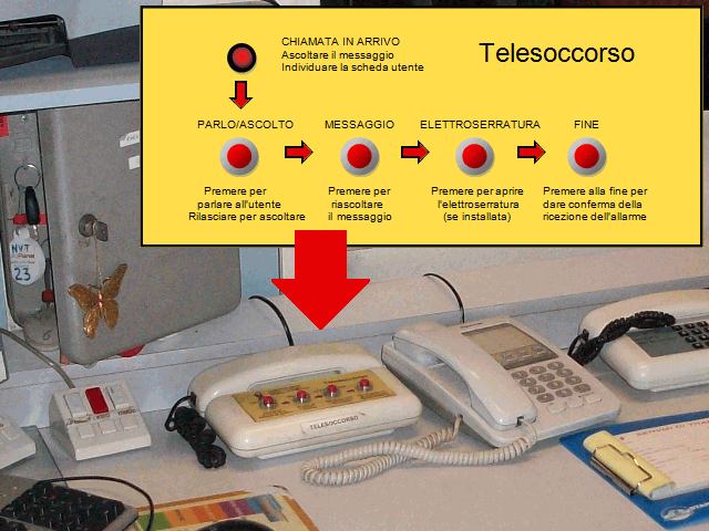 Per ricevere gli allarmi della teleassistenza si utilizzava una linea telefonica appositamente dedicata, che non veniva quindi occupata da altre conversazioni. Se, per qualsiasi motivo, la chiamata non andava a buon fine, gli apparecchi d'utente dirottavano la chiamata di soccorso su una seconda linea di riserva ripetendola più volte e alternando le due linee, finché dal Centro l'operatore non inviava lo specifico bitono DTMF di conferma ricezione.