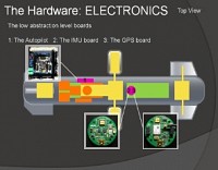 Durante l'estate abbiamo apportato numerose modifiche tecniche al nostro AUV. Abbiamo realizzato alcune nuove schede elettroniche, come le schede di controllo dei due motori brushless di propulsione (con controllo di velocità ad anello chiuso, misura di corrente, can bus isolato etc..), la scheda dell'autopilota, la scheda che controlla i motori in continua per i timoni e la rotazione dei motori, la scheda GPS etc... quindi anche molto software da testare. Inoltre abbiamo sostituito la scheda software di alto livello con la Colibri che ospita un OS Windows Compact Embedded 7 (la versione ultra-rapida fa il boot in 450ms!! la nostra immagine è un pò più "grassa" e ci mette qualche ms in più..) e l'interfaccia verso l'hardware, il webserver, e il server TCP. Anche dal punto di vista meccanico abbiamo apportato delle migliorie, quali la ridisposizione interna dei cassetti con l'aggiunta del nuovo vano batterie(non ancora visibili nel video), la sostituzione del motoriduttore per la rotazione dei thruster motors (in questo video non era ancora stato cambiato e infatti la rotazione dei motori è piuttosto lenta) e un'importante lavoro di bilanciamento e disposizione del baricentro.