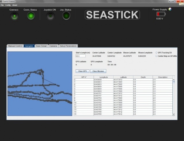 Durante l'estate noi abbiamo continuato a lavorare sul progetto Seastick e abbiamo apportato modifiche significative al sistema. I cambiamenti sono numerosi, a partire dall'integrazione di un'interfaccia di navigazione GPS all'interno del software. Attraverso questa si può caricare una missione generata con il software di mission planning (da noi realizzato) e quindi osservare il percorso del veicolo in tempo reale.