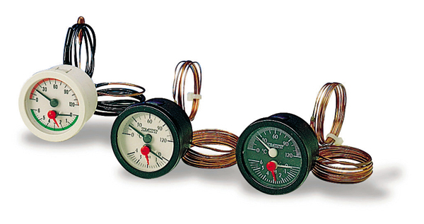 I termometri a capillare con sonda termometrica a dilatazione di liquido sono particolarmente adatti per essere installati su caldaie, frigoriferi, elettrodomestici e apparecchi per la ristorazione. I prodotti di serie possono rilevare temperature tra 0 e 300°C e sono disponibili in diversi campi di misura, dimensioni e colori. Su richiesta sono ampiamente personalizzabili.