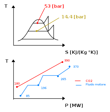 Non so se vi salta all'occhio, ma la possibilità di avere un fluido termovettore così, cioè che è sempre allo stato gassoso (non buono termicamente), ma svincolato da livelli di temperatura, permette di scindere i circuiti motori (che possono essere totalmente simili ai tradizionali termoelettrici, da quello termovettore. Adesso è sotto studio, e s cerca di rifarlo per potenze molto grandi.