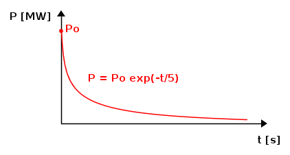 Stop : lo spegnimento della attività neutronica immediata all’interno del reattore è impossibile in quanto, seppur abbassando al massimo le barre di controllo rapidamente (scram), si ha un seguirsi dell’attivitá fissiva all’interno delle barre combustibile che tuttavia riscaldano il fluido termovettore. L’andamento della potenza termica nel tempo a scram avvenuto è del tipo: