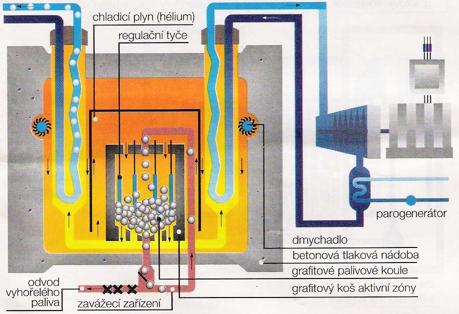 Thermal Exchange: il calore viene prodotto dagli “urti” che hanno i prodotti di fissione di massa maggiore, e vengono a coinvolgere tutte le parti del nocciolo (chiaramente incluso le particelle del fluido termovettore). I prodotti rimangono confinati all’interno della guaina e post reazione si fermano rimanendo radioattivi e formando la carica esaurita. In linea di massima si può affermare che la ripartizione della produzione di calore è la seguente: