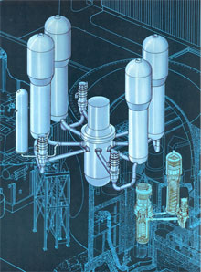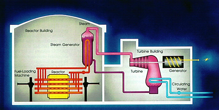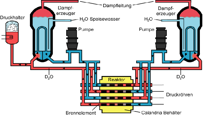 - Circuito Primario, dove l'acqua pesante modera e porta fuori il calore ai (due o tre) generatori di vapore