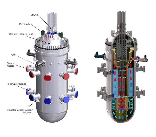 La struttura dei PWR è molto semplice: vi è un circuito di produzione del vapore, NSSS Nuclear Steam Supply System, ed un circuito di lavoro, Work Cycle, chiamati anche circuito Primario e Secondario.
