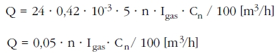 Q = 0,05 ⋅ n ⋅ Igas ⋅ Cn / 100