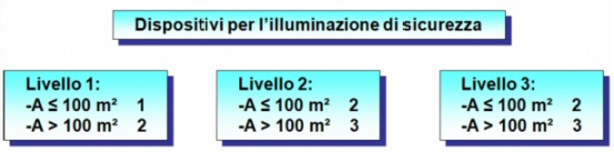 Deve essere installata l’illuminazione di sicurezza avente lo scopo di garantire mobilità alle persone in caso di assenza dell'illuminazione ordinaria il numero delle lampade dipende dal livello e dalle dimensioni dell’appartamento.
