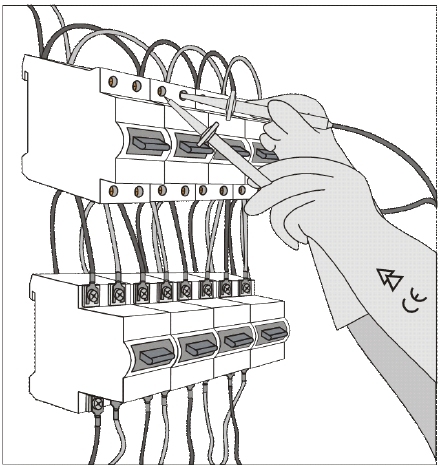 Misurazione su un’apparecchiatura che presenta un grado di protezione IP inferiore di XXB, parti attive quindi accessibili, ed utilizzo di puntali che presentano l’impossibilità di creare un cortocircuito; in questo caso la misurazione dovrà essere eseguita adottando parametri di sicurezza contro il rischio elettrico, in particolare quelli adottati nei lavori sotto tensione, e, nello specifico, si dovranno usare i guanti isolanti.