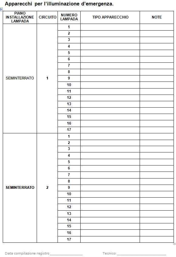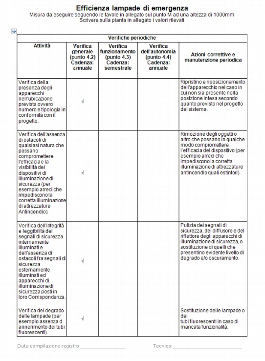 Ho voluto scrivere questo articolo riportando un esempio di registro di verifica dell'illuminazione di sicurezza riferito al piano seminterrato di un edificio, impianto gestito da un soccorritore.