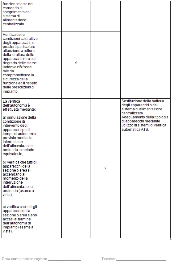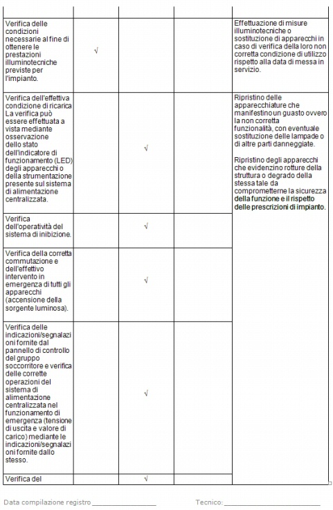 Verifica illuminazione di sicurezza Per l‘esecuzione della verifica si devono tenere in considerazione la normativa tecnica, la legislazione vigente applicabile ed eventuali specifiche indicazioni fornite dal costruttore, dal progettista e/o dall’installatore.