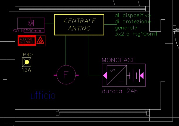 a) dispositivi di allarme di incendio e di guasto, acustici e luminosi,della centrale di controllo e segnalazione percepibile nelle immediatevicinanze della centrale stessa;