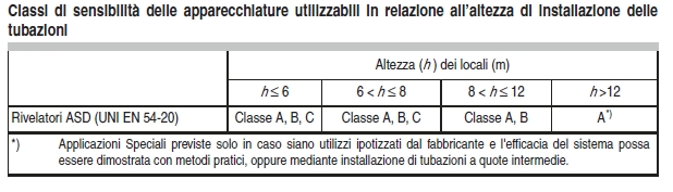 Classe A - Elevata sensibilità per la rivelazione precoce di fumo in numerosi ambienti commerciali e produttivi, con elevata circolazione d'aria, o ad alto rischio.