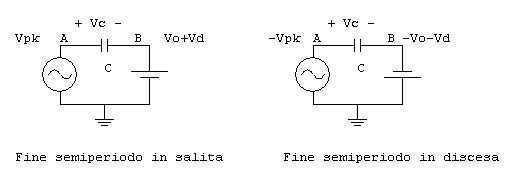 Durante un semiperiodo, dal picco positivo al picco negativo della rete, la variazione di tensione sul condensatore