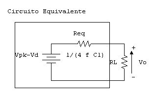 che esce dal ponte e passa nel carico può anche essere scritta, usando la legge di Ohm come Vo/RL. La relazione si basa sul fatto che la corrente media che passa nel condensatore è nulla, e quindi la corrente media che esce dal ponte passa tutta nella resistenza di carico.