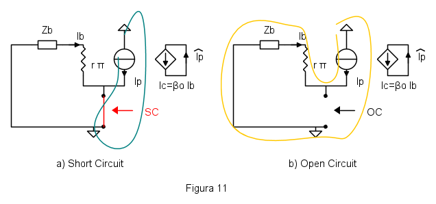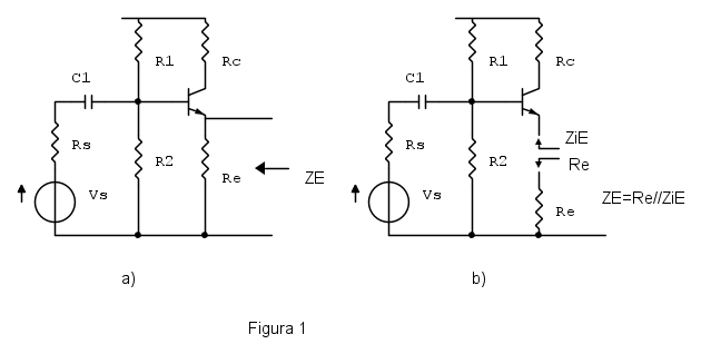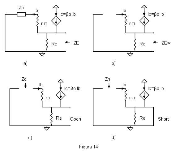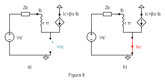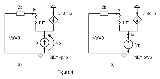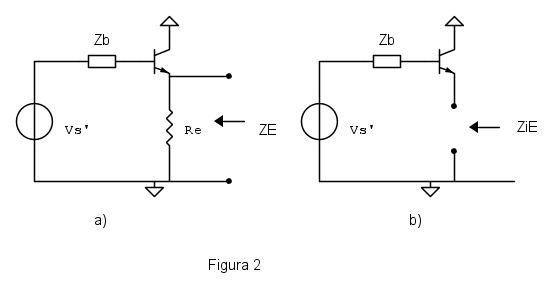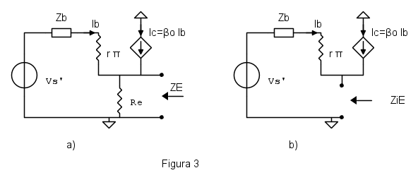 Il circuito equivalente su cui si lavorerà è mostrato in figura 3, al solito si cercherà di lavorare sul circuito 3b, ma in qualche caso potrebbe essere necessario includere la resistenza di emettitore fin dall'inizio dei calcoli.