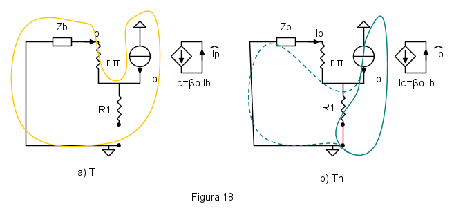 Il fatto che un semplice partitore di due impedenze sia un sistema retroazionato, con tanto di rapporto di ritorno o guadagno di anello, non è molto noto, ma è illustrato in [21]. I due rapporti di impedenze sono quindi il (reciproco) del rapporto di ritorno valutato fra l'impedenza aggiunta e l'impedenza vista nella rete quando i morsetti dove si vuole trovare l'impedenza sono in cortocircuito o in circuito aperto, e quindi i due rapporti di ritorno sono appunto