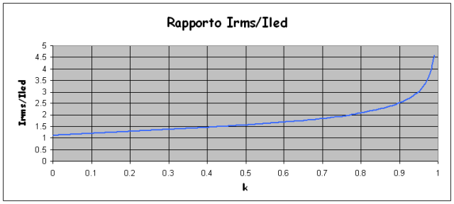 Come e` semplice immaginare, di mano in mano che aumenta la tensione necessaria per i led, diminuisce il valore di