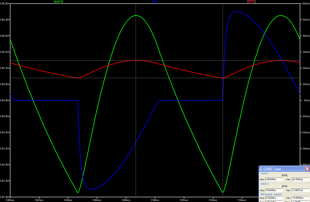 circa, in rosso la tensione ai capi dei diodi: si vede che c'e` una discontinuita` di