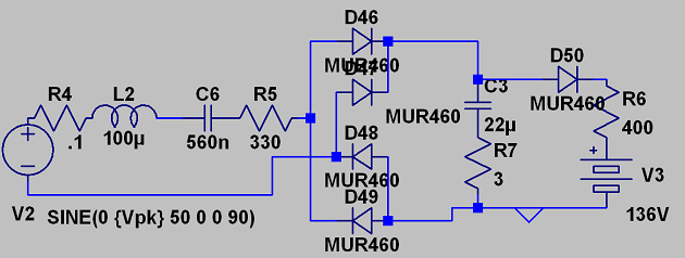 Lo schema, a parte Rr, e` il classico raddrizzatore a ponte con condensatore di livellamento.