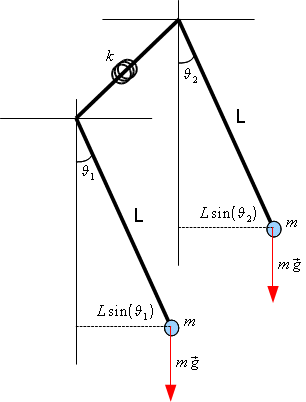 - molla fra i due pendoli, con energia elastica data dalla differenza degli angoli