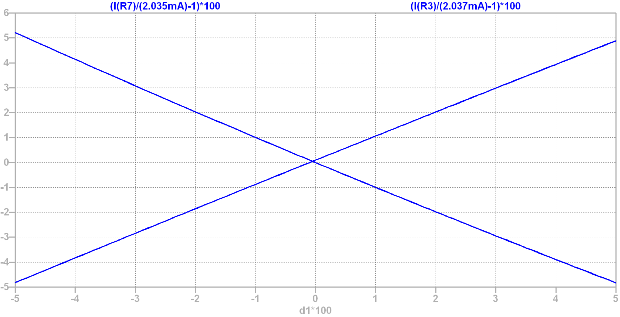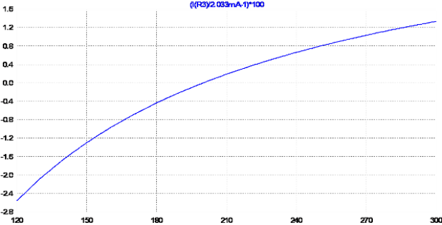 che non e` tanto male in quanto e` una dipendenza dal valore di un resistore, la cui stabilita` e precisione, se necessario, possono essere molto elevate. Invece nel paragrafo precedente si stava cercando di ridurre l'effetto della variazione di
