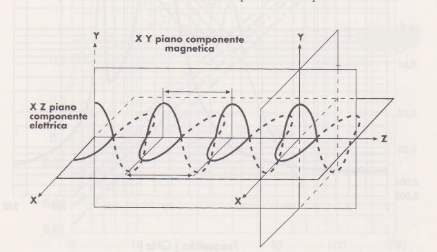 Semplificando molto la trattazione fatta nell'ambito della fisica, il fenomeno della polarizzazione è inteso come causa di trasformazione della vibrazione e.m. ordinaria, come ad esempio le onde radio, in una vibrazione ordinata in un certo modo (appunto detta polarizzata). In generale possiamo dire che la polarizzazione di un'onda e.m. fa riferimento alla direzione delle linee di forza componenti il campo e.m. La seguente figura riporta la rappresentazione nello spazio del campo elettrico nel piano XZ e del campo magnetico nel piano YZ provocati dall'emissione di una corrente alternata sinusoidale. I due piani sono normali fra loro e la direzione Z coincide con la direzione di propagazione: