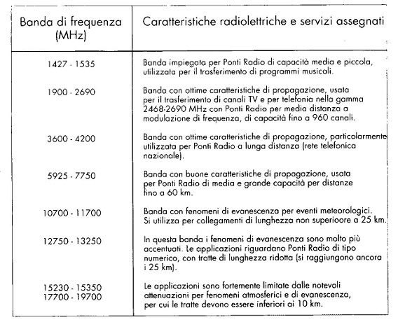 2. Frequenze impiegate per i collegamenti in ponte radio