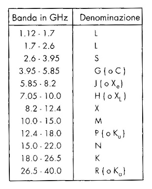 La seguente tabella classifica le microonde in funzione della loro utilizzazione: