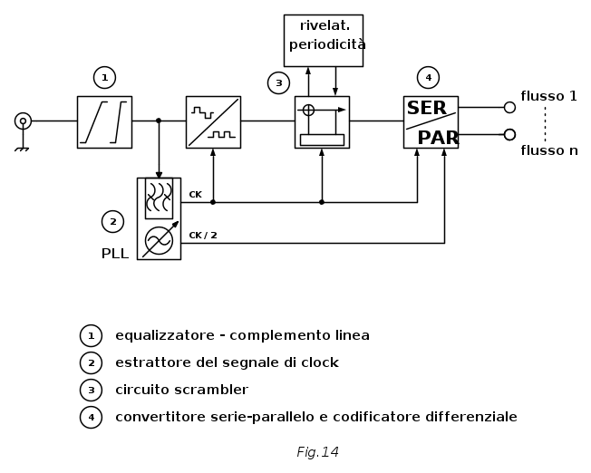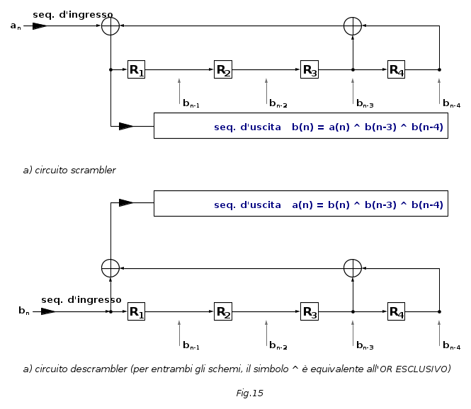 Il principio di funzionamento di uno scrambler/descrambler autosincronizzante è analizzabile partendo dall'analisi della seguente figura: