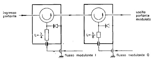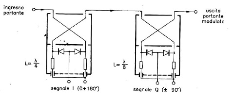 su una lunga λ / 4. Si può quindi ottenere un modulatore 4PSK impiegando due modulatori bifase capaci di realizzare rispettivamente salti di