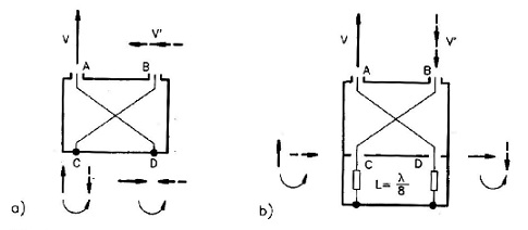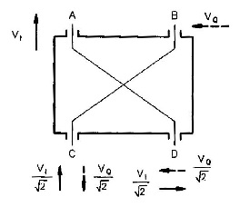 rispetto a V, con modulo che, assumendo nulle le perdite all'interno dell'ibrido e nei punti di riflessione, è uguale a quello di V.