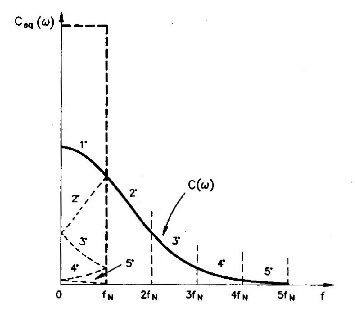 con n = 1,2,3,.... E' possibile dimostrare che esiste una famiglia di funzioni C(ω) che soddisfano a questa esigenza purché il loro andamento sull'asse delle pulsazioni, precedentemente suddiviso in intervalli di larghezza 2πfN e poi traslati entro la banda 2πfN con "ripiegamenti" dei soli intervalli di ordine pari, dia luogo ad una funzione somma di ampiezza costante e fase lineare. La seguente figura illustra la costruzione grafica della funzione equivalente di Nyquist Ceq(ω):