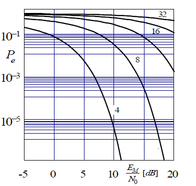 Per valutare la probabilità di errore basta ricordare che, nell'ipotesi che il canale di trasmissione sia ideale, il segnale in ingresso al demodulatore è r = αan + n con gli stessi significati introdotti per il caso binario. Seguendo quindi lo stesso criterio di decisione, il ricevitore decide sul simbolo a trasmesso secondo il valore assunto dal segnale ricevuto r = αan + n.