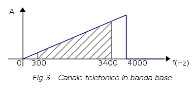 Convenzionalmente lo spettro del canale telefonico in banda base è rappresentato da un triangolo rettangolo come nella seguente figura, dove la zona ombreggiata indica la banda netta: