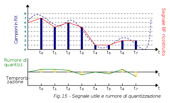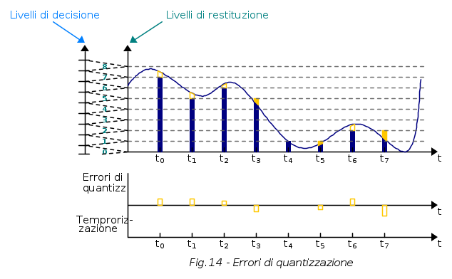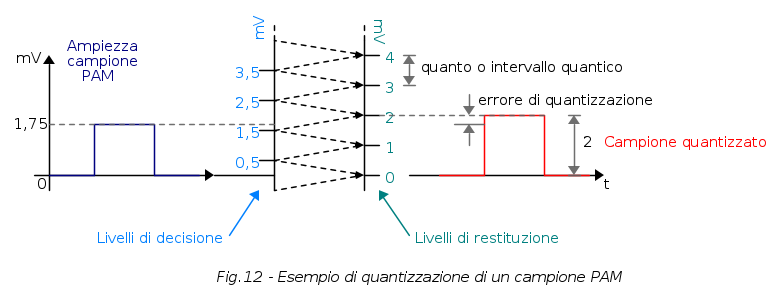 Entrando un po' più nel contesto specifico, si può dire che quantizzare consiste nel paragonare i campioni PAM ad una scala di tensioni prefissate ed associare al campione il valore di tensione a cui esse più si avvicina. A tal proposito soffermiamo la nostra attenzione sulla seguente figura: