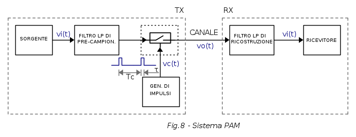 Vediamo allora lo schema a blocchi di massima rappresentativo di un sistema di trasmissione PAM:
