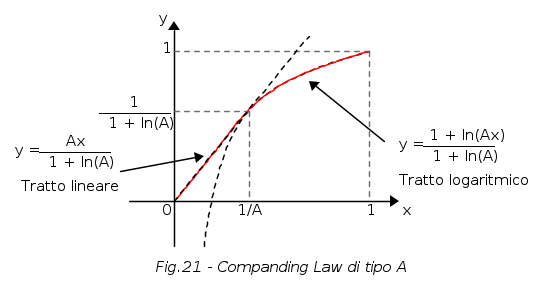 Poiché è necessario che la curva di conversione con la quale ottenere la quantizzazione non lineare sia logaritmica, si comprende come, non passando la funzione y = lnx per l'origine degli assi, tale curva possa essere la combinazione di una funzione logaritmica e di una funzione lineare: