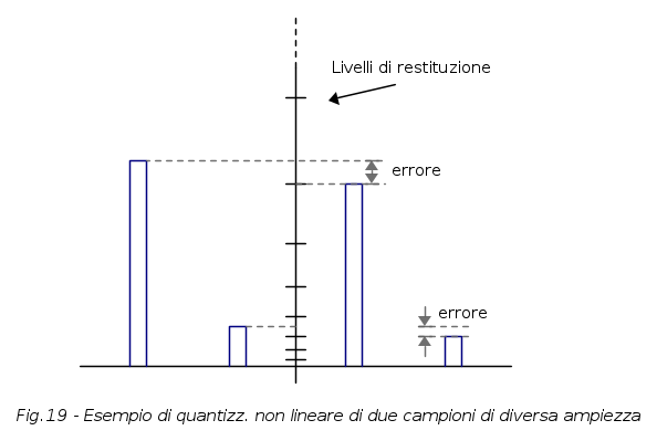 I livelli di restituzione si definiscono livelli quantici ed il salto tra due livelli quantici adiacenti si definisce quanto; iniziamo a considerare adesso la quantizzazione lineare, dove il salto tra un livello ed il successivo ha sempre la stessa ampiezza (caso di Fig.12).