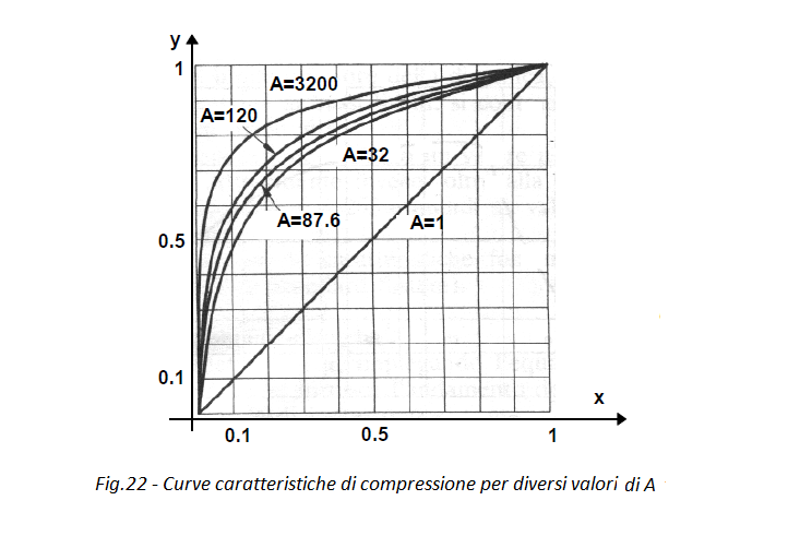 La legge di compressione A è governata dalle seguenti relazioni: