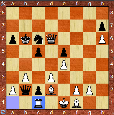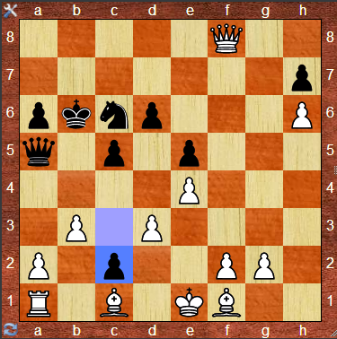 | 23 | Dxf8 | c2+ |