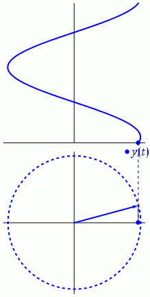 Bisogna adesso definire quando una sinusoide è in ritardo o in anticipo rispetto all'altra. Per farlo, riferiamoci alla figura sopra; le sinusoidi y(t) e x(t) sono descritte dalle seguenti equazioni: